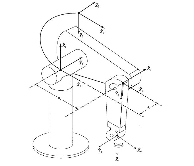 - 先按xi−1 轴(起始坐标系)旋转αi,使得zi,zi−1轴指向一致;